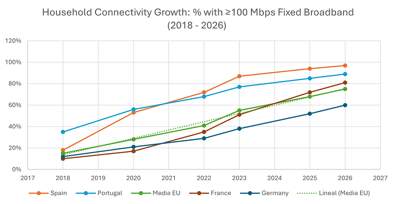 - Unrivaled Connectivity: Spain has achieved nearly 100% broadband coverage (speeds >100 Mbps) in 2025, meeting national targets ahead of schedule and standing 20 points above the EU average.